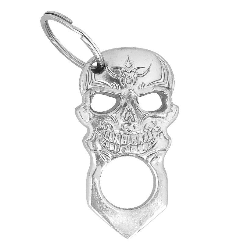 špecifikácia : kovový jednootvorový boxer v tvare lebky je účinnou zbraňou v prípade sebaobrany a zároveń slúži ako kľúčenka