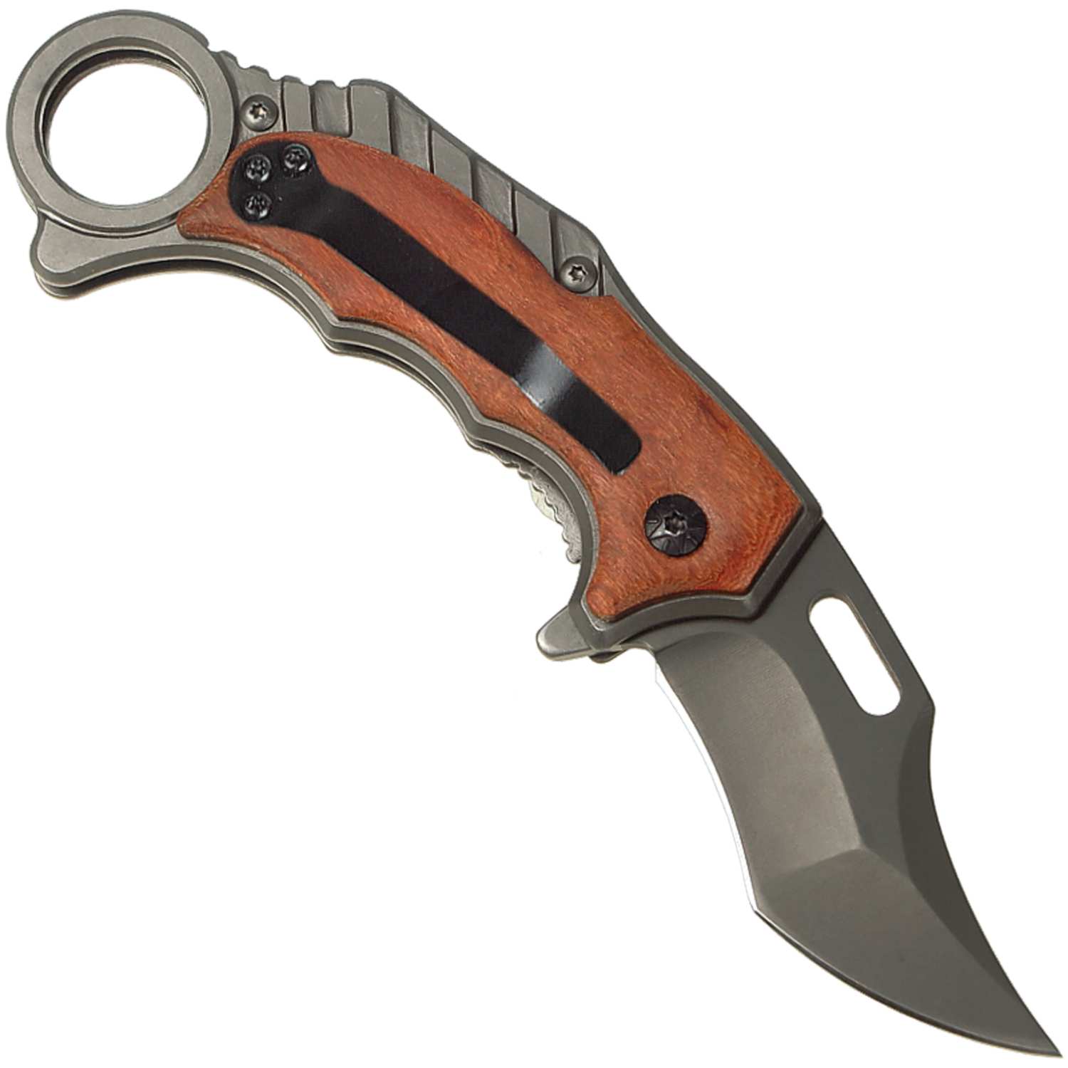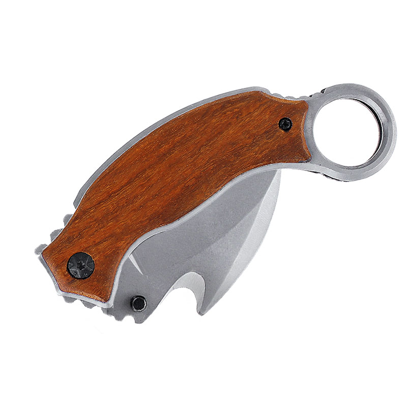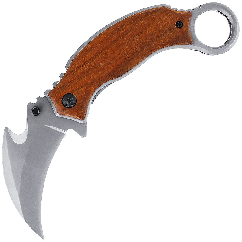 Nožík Karambit X52 je kompaktný skladací nôž s poistkou pre upevnenie čepele. Čepeľ bola vyrobená z nerezovej ocele, ktorá je robustná a na povrchu pokrytá tmavým ochranným náterom. Rukoväť tohto noža je vyhotovená z dreva, ktoré poskytuje bezpečný a pohodlný úchop za každej situácie. Čepeľ noža je dlhá 8 cm a celková dĺžka noža po otvorení je 17 cm. Tento karambit je vybavený oceľovým klipom, ktorý je umiestnený na rukoväti pre lepšie prenášanie.