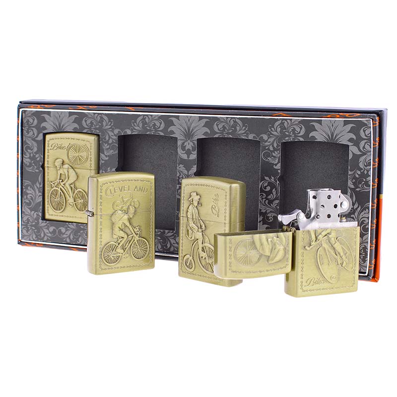 Sada štyroch zladených benzínových zapaľovačov v darčekovom balení. Tieto zapaľovače určite potešia každého, kto ocení trendové zapaľovače v prevedení retro štýlu. Svoj účel hravo splnia v interiéri, ale aj exteriéri aj za zlých poveternostných podmienok. Zapalovacie služby pre Vás vykonajú podstate v akomkoľvek počasí. Tieto zapaľovače fungujú na nie veľmi zložitom princípe. Ide o systém, kde zapaľovacie koliesko trením o magnéziovú tyčku vytvára iskry smerujúce na knot, ktorý sa vznieti. Určite nič nepokazíte, keď si tento darčekový set zakúpite a využijete ho ako praktický darček muža fajčiara.