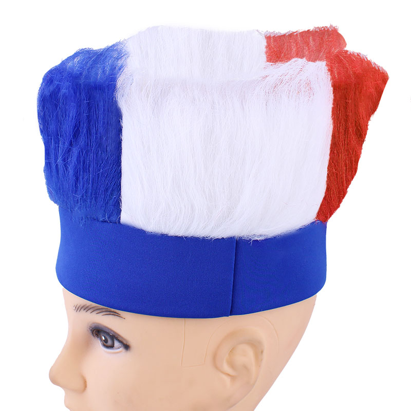 Čelenka s vlasmi vo farbách Slovenskej vlajky. Na výrobu bol použitý 100% polyester. Ideálna čelenka na fandenie počas hokejových zápasov, futbalových zápasov alebo iných športových podujatí.