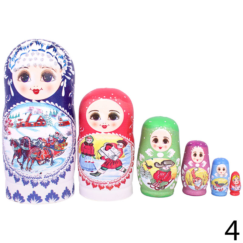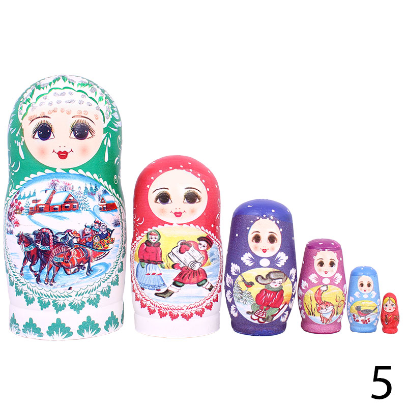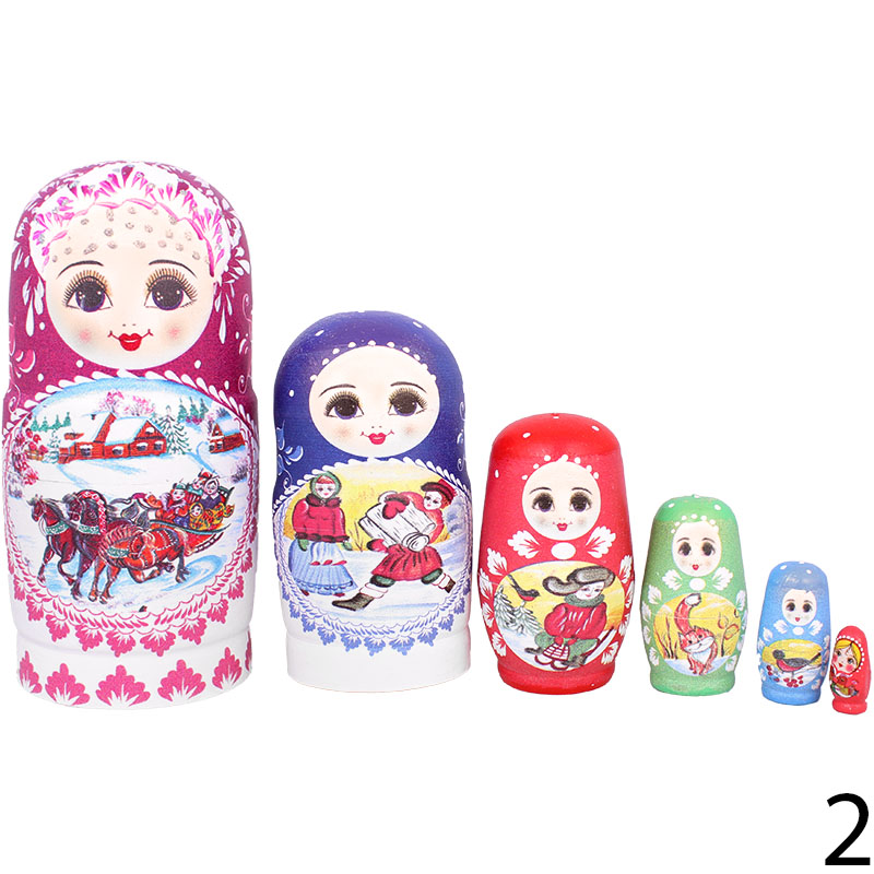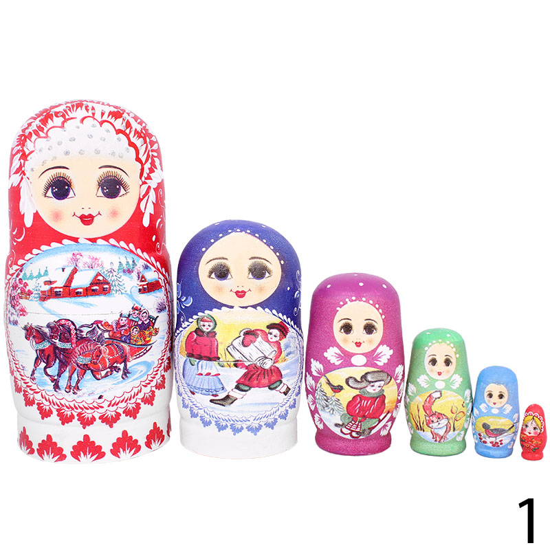 Kvalitné rozkladacie duté maľované ruské matriošky z dreva, ktoré sú vložené jedna do druhej v počte 6 kusov. Výška matriošiek je od 2,5 cm do 16 cm. Klasická drevená ruská matrioška je vhodná ako dekoračný predmet, suvenír, pre zberateľov alebo ako hračka. Nevhodné pre deti do 3 rokov z dôvodu možného prehltnutia najmenšej matriošky. Ideálna drevená dekorácia na poličku.