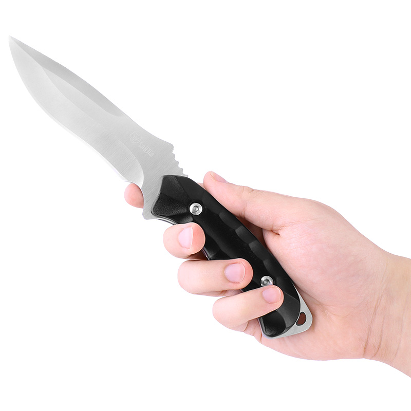 Lovecký nôž, ktorý sa hodí na rôzne outdoorové aktivity. Tento kvalitný poľovnícky nôž s pevnou čepeľou je vyrobený z nerezovej ocele 420. Čepeľ je vybavená drážkami pre palec, ktoré umožňujú precíznejšie a kvalitnejšie manipulovanie. Pohodlná rukoväť je kovová a bola vyrobená do ergonomického tvaru pre pohodlný a bezpečný úchop. Rukoväť zároveň disponuje okom pre navlečenie šnúry. Balenie obsahuje čierne puzdro z cordury, ktorý je možné pripevniť na opasok nohavíc.