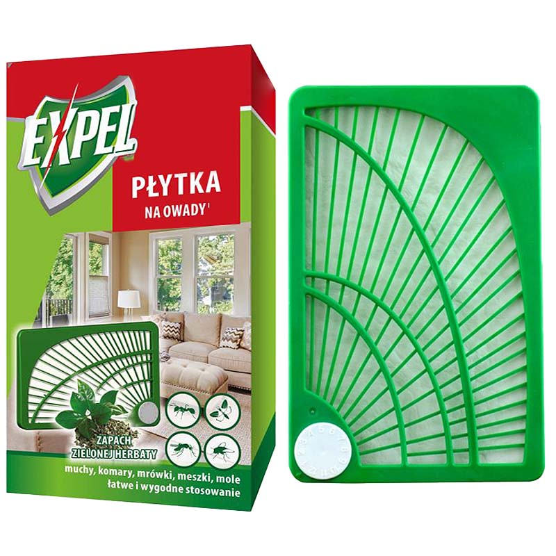Doštička odpudzujúca hmyz Expel je tradičná forma boja proti lietajúcemu hmyzu a mravcom, ktorá sa vďaka svojej účinnosti používa v mnohých domácnostiach. Doštička obsahuje insekticídnu látku, ktorá sa postupne uvoľňuje vo forme plynu, pričom plnú účinnosť dosiahne 48 hodín po použití (vybratie z obalu). Účinnou látkou je praletrin - syntetický biocíd (9,19%) s preukázanou účinnosťou proti mnohým lietajúcim hmyzom a mravcom. Odpudzovač ochráni miestnosť s objemom cca 30 m3 (do 12 m2) až 60 dní. Počas prevádzky odpudzovač zanecháva aj jemnú vôňu zeleného čaju. Odpudzovač je účinny proti: muchám, komárom, mravcom, pakomárom, moliam a osám.