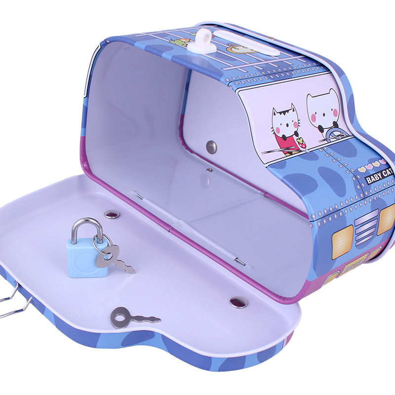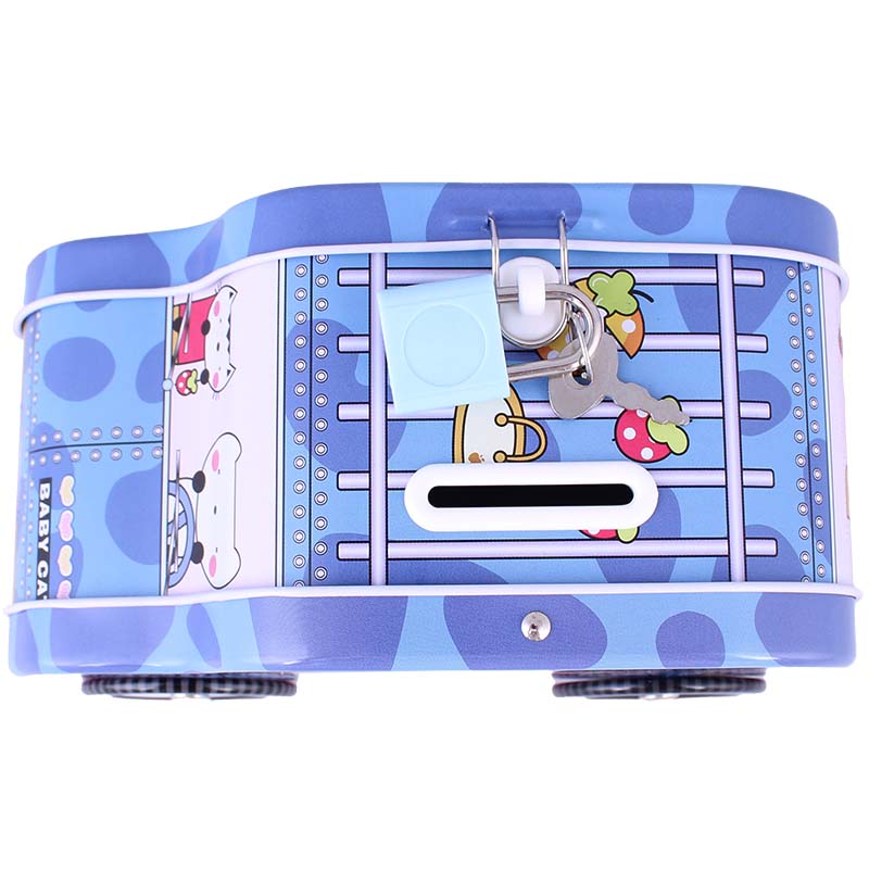 Pokladnička auto rozmerov 15 x 8 x 10 cm na odkladanie mincí alebo bankoviek pre každé dieťa ako darček na Vianoce alebo narodeniny. Do pokladničky je možné vkladať všetky druhy eurových mincí aj českých korún. Peniaze sa vyberajú cez bočnú stranu auta, ktorú je prípadne možné uzamknúť na kľúč. Detská pokladnička je vyrobená z kovu. Vrchný otvor je široký 0,3 cm a dlhý 3 cm.
