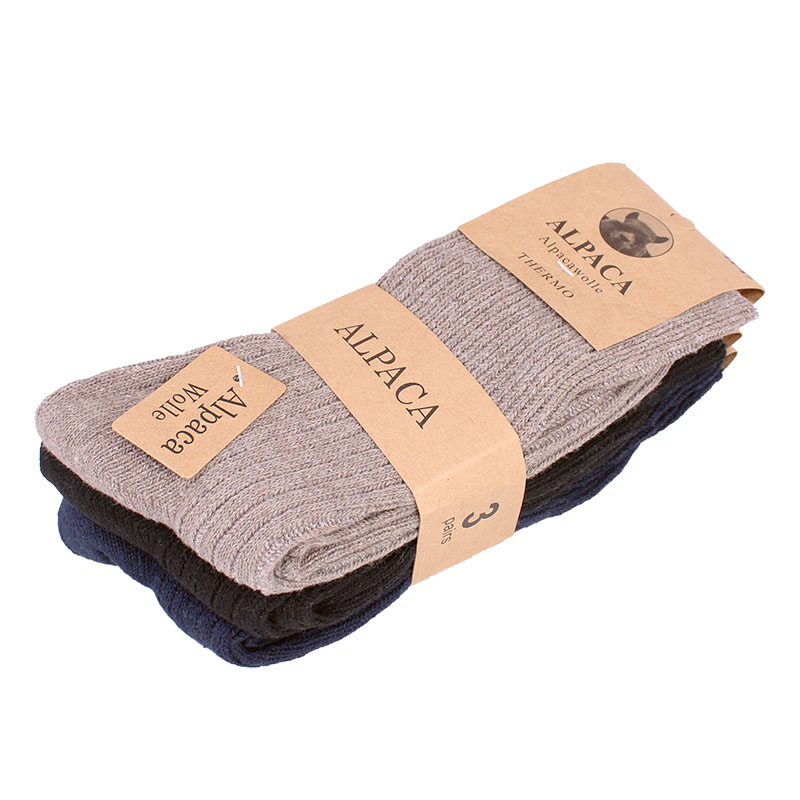 Tieto pánske vyššie ponožky sú kvalitné vlnené ponožky do zimných či prechodných mesiacov, vďaka ktorým zostanú nohy v teple a suchu aj za zhoršených tepelných podmienok. Materiálové zloženie pozostáva z 90% vlny alpaky, 5% bavlny a 5% akrylu. Tieto froté ponožky ocenia najmä muži s boľavými nohami, keďže lemy ponožiek svojou voľnou stavbou nesužujú nohu, zatiaľ čo udržiavajú ponožky samotné na mieste a teda ich nevyzúvajú z nôh.
