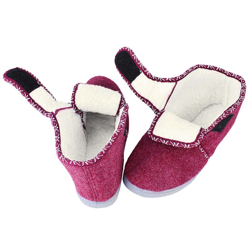 Tieto dámske kapce sú tou správnou voľbou pre tých, ktorí hľadajú pohodlné filcové papuče na doma aj do vonkajšieho prostredia. Vonkajšia, ako aj vnútorná strana obuvi je pokrytá príjemným filcovým materiálom, ktorý príjemne reaguje na dotyk s nohou. Filcové kapce pre seniorov sú vďaka ich hrubému prevedeniu ideálne do teplejších ale aj chladných mesiacov v roku. Zapínanie filcovej obuvi funguje za pomoci suchého zipsu. Podrážka kapcov bola vyrobená z polyuretánu, ktorý vytvára ideálnu stabilitu a pevnosť obuvi. Tieto dámske papuče sú tak poriadnou obuvou ako aj ideálnym darčekom pre seniora, ktorý potrebuje poriadne kapce.