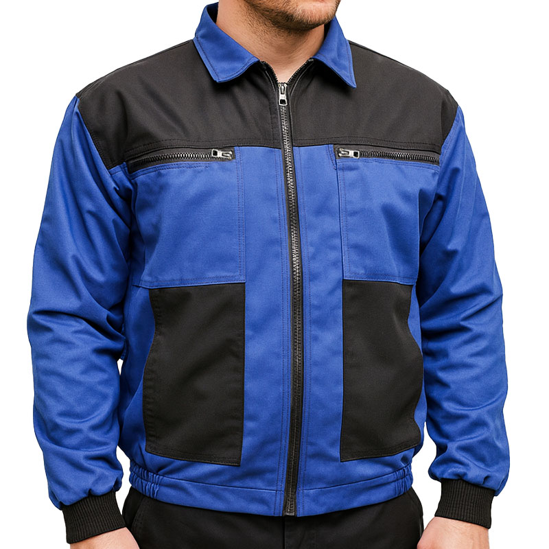 pracovná bunda NIKA modrá je vhodná do dielne, záhrady a rôzne práce v stavebníctve, strojárstve, poľnohospodárstve, v sklade, v autodielni, do znečisteného prostredia a pod.