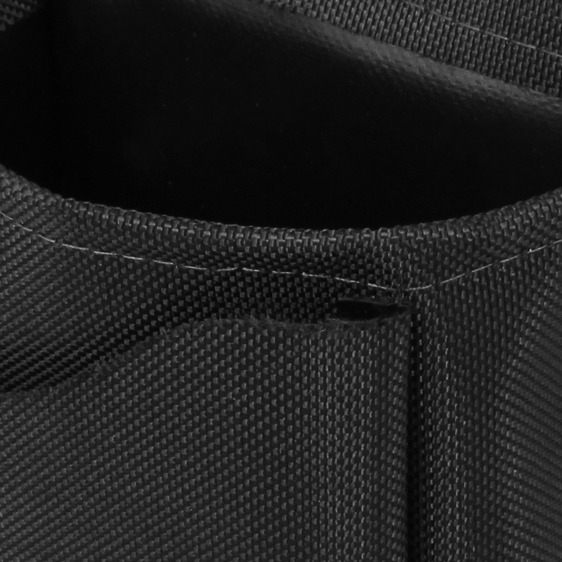 Čierne puzdro na čašnícku peňaženku vyrobené z nylonu. Vnútorné rozmery puzdra sú 10 x 5,5 x 14 cm. V prednej časti sa nachádza malá priehradka s rozmermi 7 x 10 cm pre doklady, papierové peniaze, mince, karty a pod. Na bočnej strane je zasa malé puzdro, do ktorého sa zmestí pero.