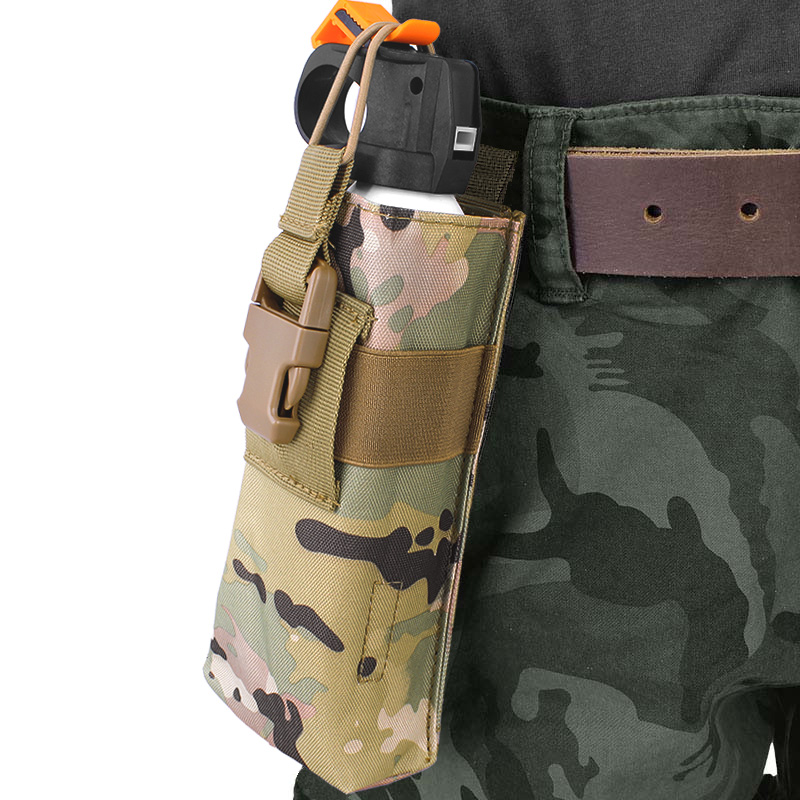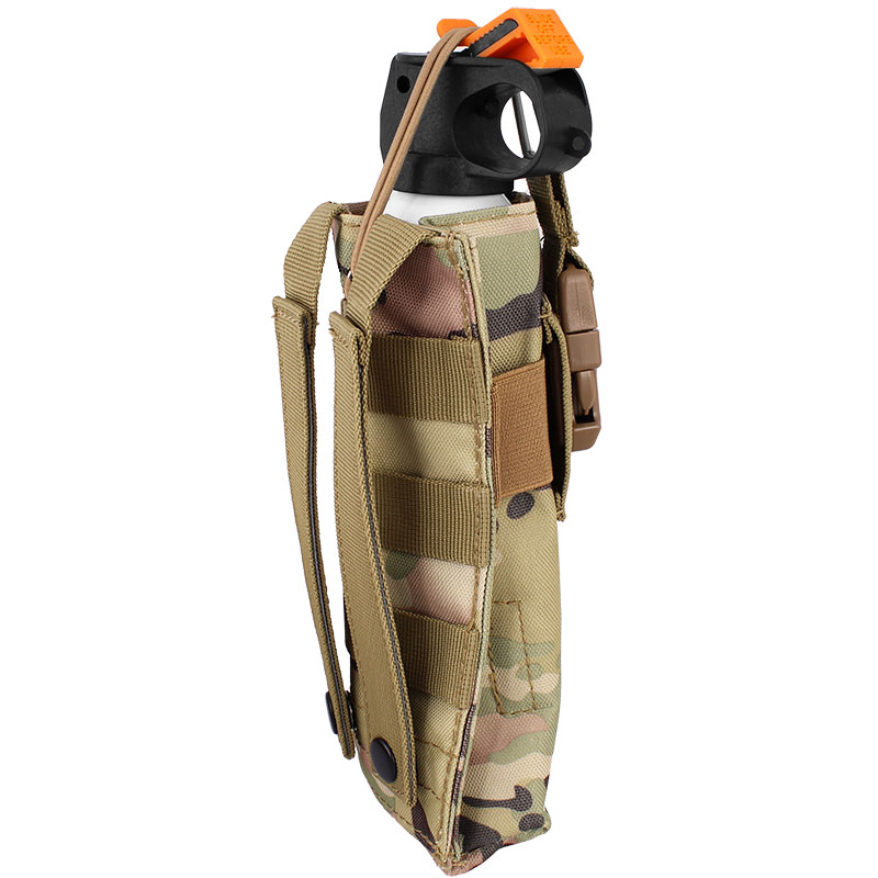Praktické, užitočné puzdro na opasok značky TFT vyniká dostatočne veľkým priestorom pre rôzne druhy obranných sprejov na medvede. Vďaka bezproblémovému pripevneniu na opasok bude kaser na medveďa vo vnútri puzdra na dosah ruky. Puzdro bolo vyhotovené z kvalitného nylonu, ktorý bol doplnený o multicam maskovanie. Puzdro na sprej na medvede je možné pripevniť na opasok a kaser vo vnútri pripevniť pomocou plastovej pracky.